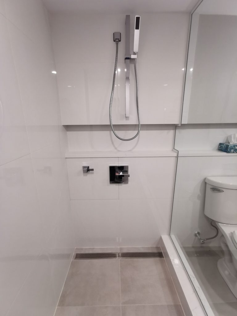 Frameless glass showers are sleek, accessible, and easy to clean. Without a frame, the glass enclosure can make your shower appear longer and feel more spacious and bright.